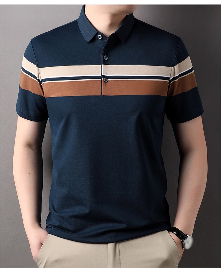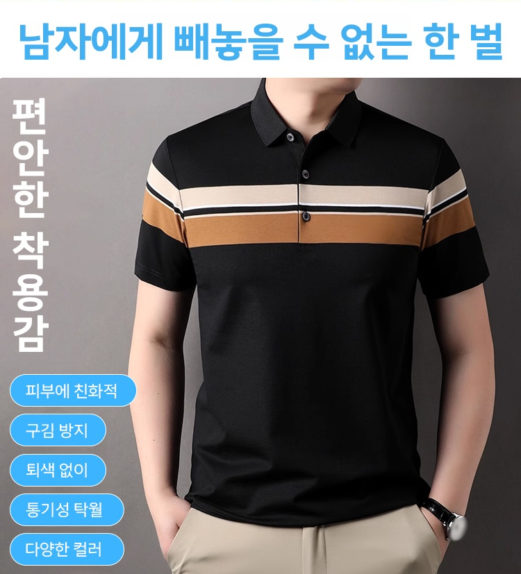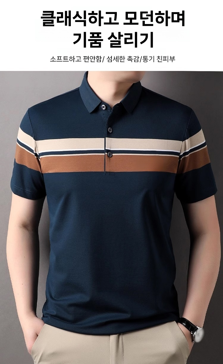 칼라 넥 스트라이프 남성 반팔